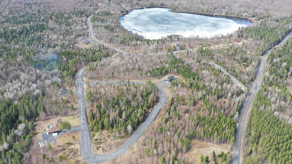 La superficie des terrains varie entre 33 000 p² et 87 000 p². Les terrains sont conçus de manière à ce que chaque maison bénéficie d’une intimité garantie. Plusieurs terrains sont au bord de l’eau, les autres lots ont accès aux lac via le terrain numéro 13. Des règles strictes sont à suivre pour limiter le déboisement, et assurer la qualité architecturale des constructions.